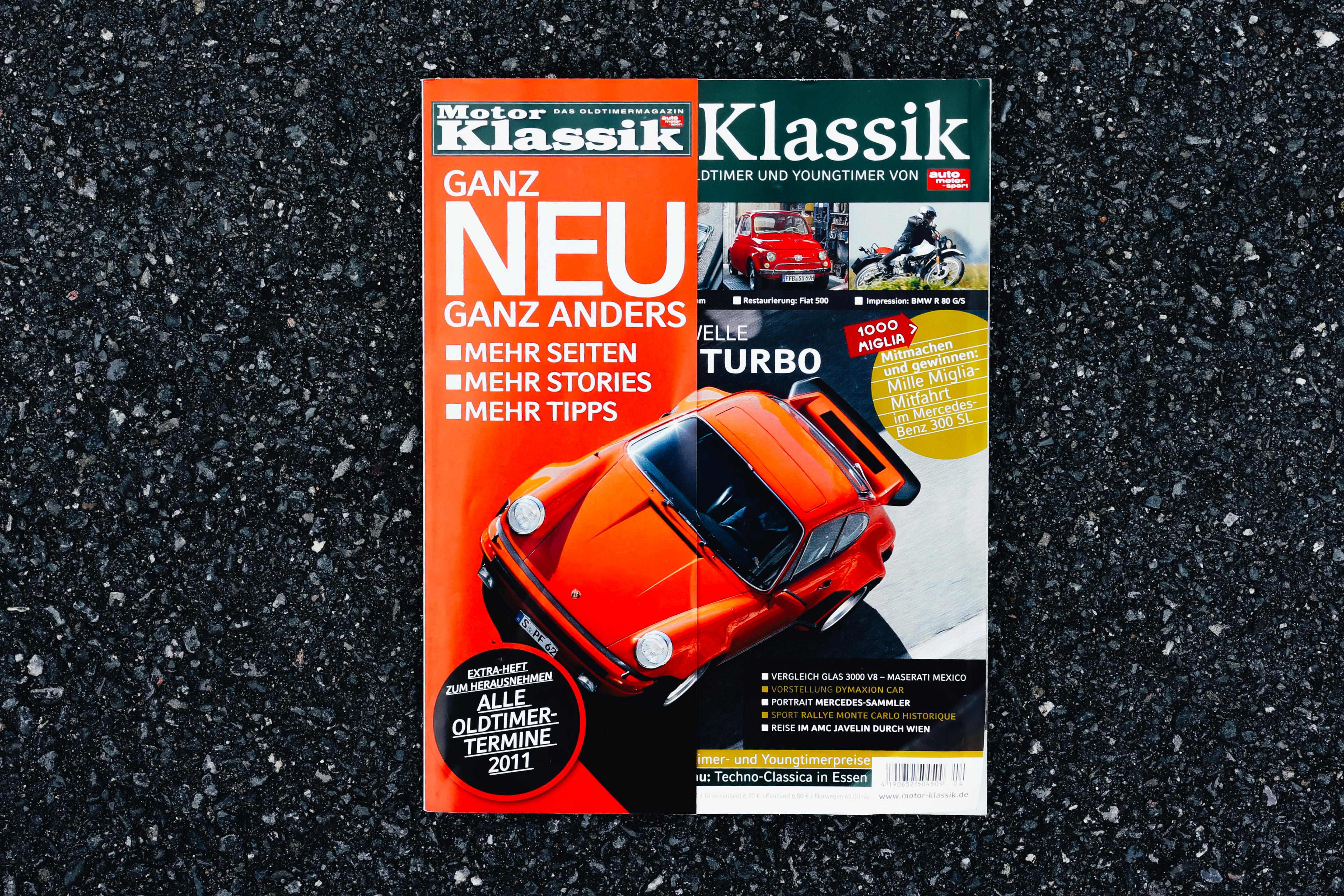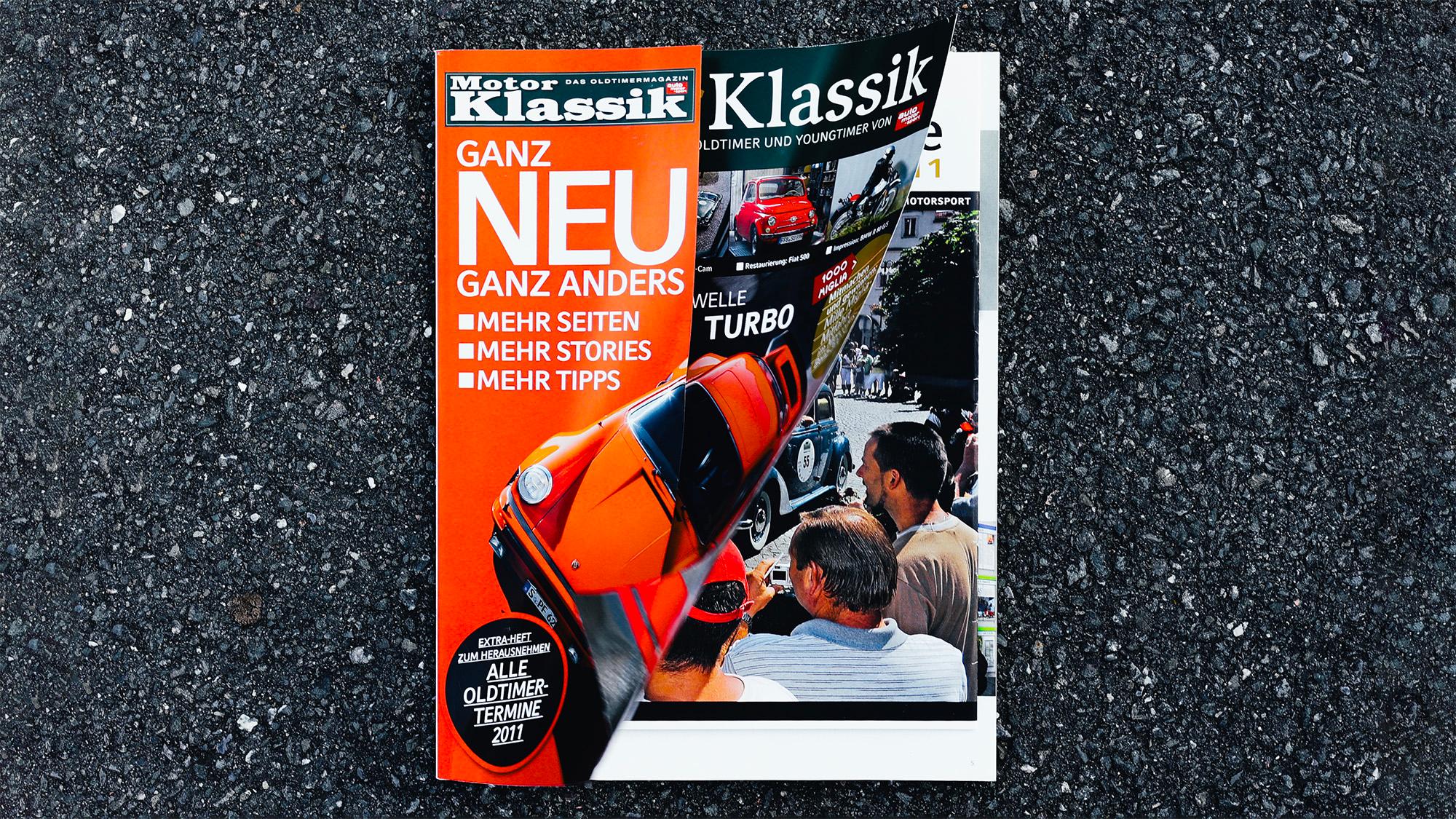 MotorKlassik celebrated the premiere of the new design with issue 4/2011: it appeared with a cover flap in the old design, revealing the new design underneath, which is still in place today.